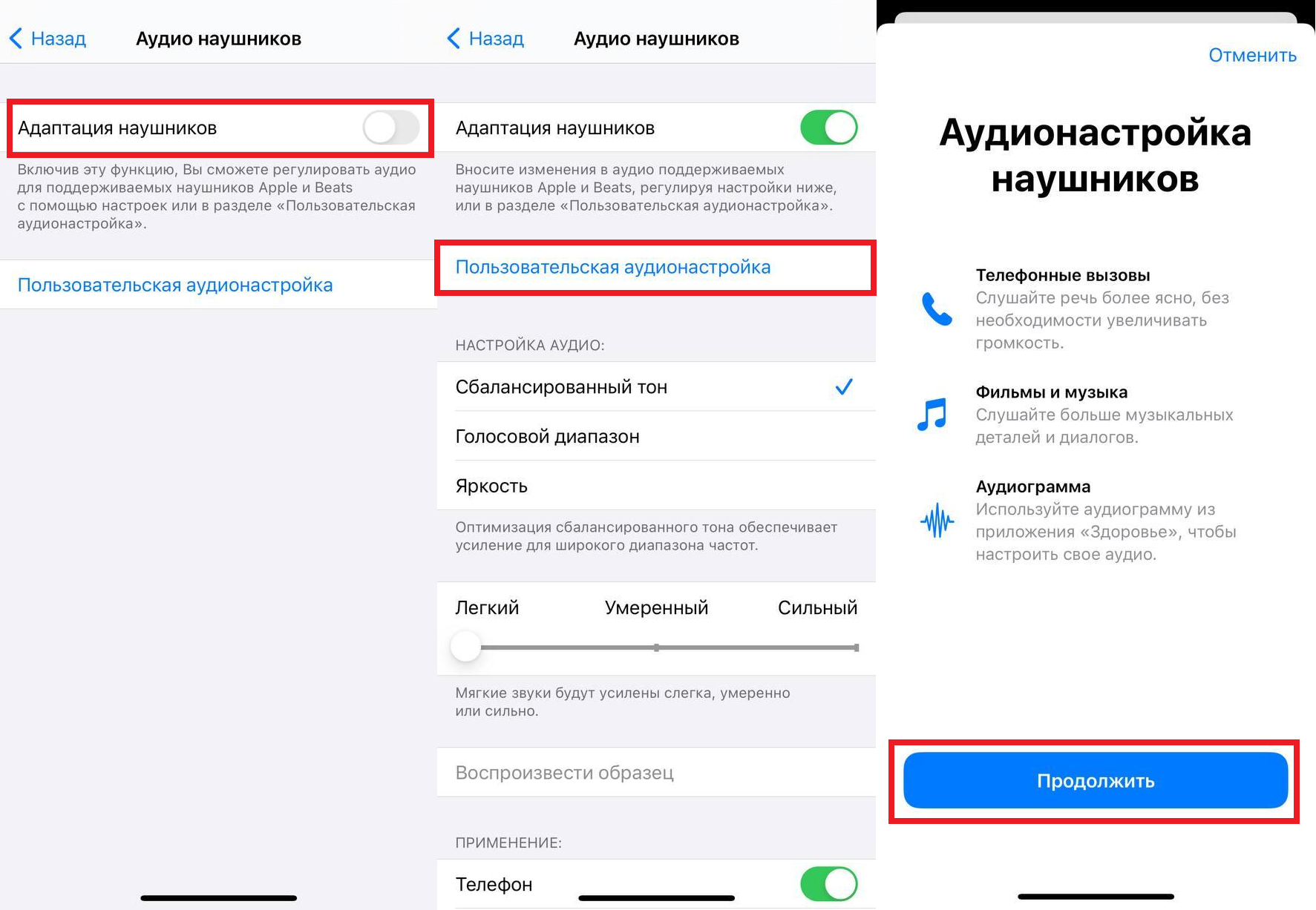 Убедитесь, что ваши наушники подключены к iPhone, перед тем, как начинать настройку. Иначе вы увидите сообщение о том, что наушники не поддерживаются.