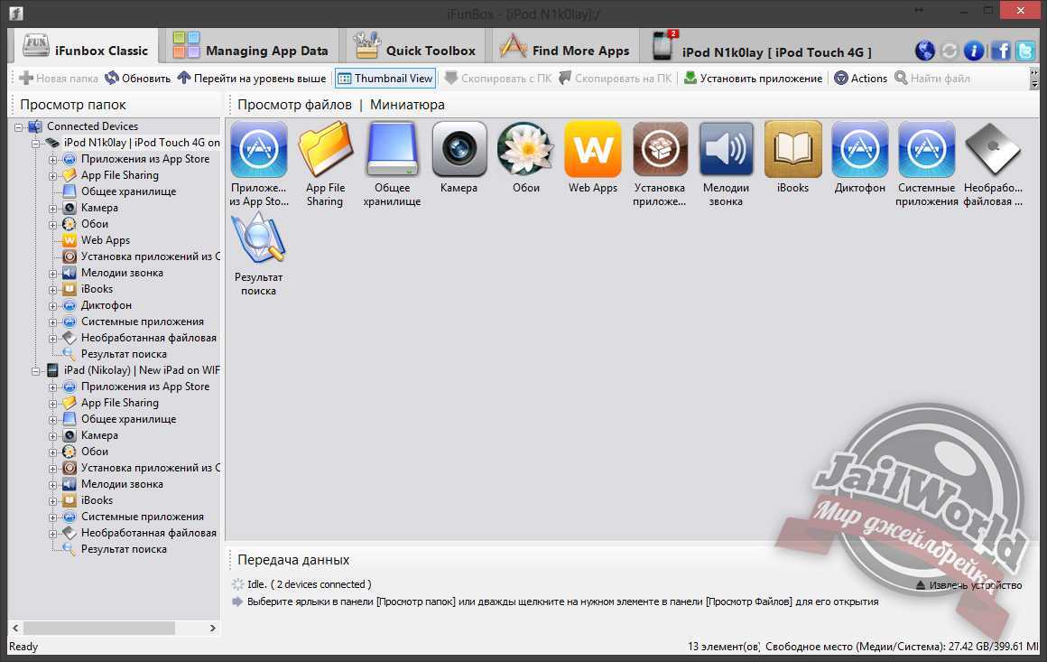 Мы хотим установить твик на iPod Touch. он подключен шнуром, но так же в нашей Wi-Fi сети находится и iPad, с которым мы так же можем работать! Но сейчас нам нужен именно iPod.
