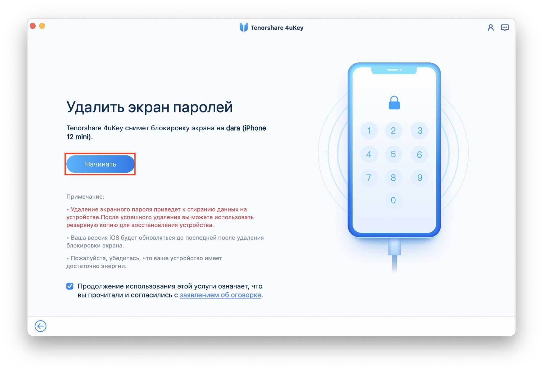 Шаг 3. В главном меню приложения нажмите на кнопку «Начать разблокировать».