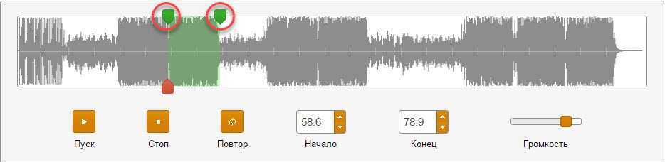 - Обрезать трек, выбрав нужный фрагмент композиции.
