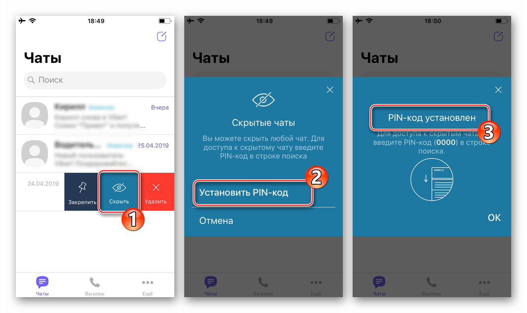 В Вайбере открыть скрытый чат на Айфоне можно таким же способом.