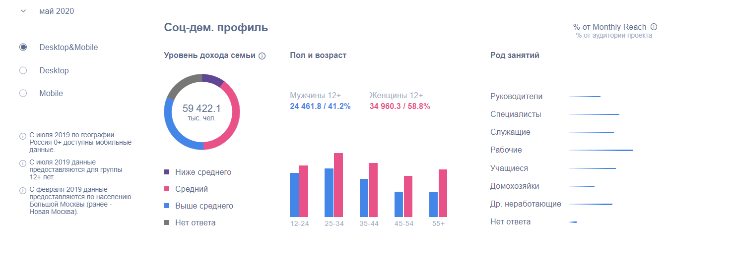 - расположение аудитории, которое ограничивается не только Российскими городами, но и странами СНГ;