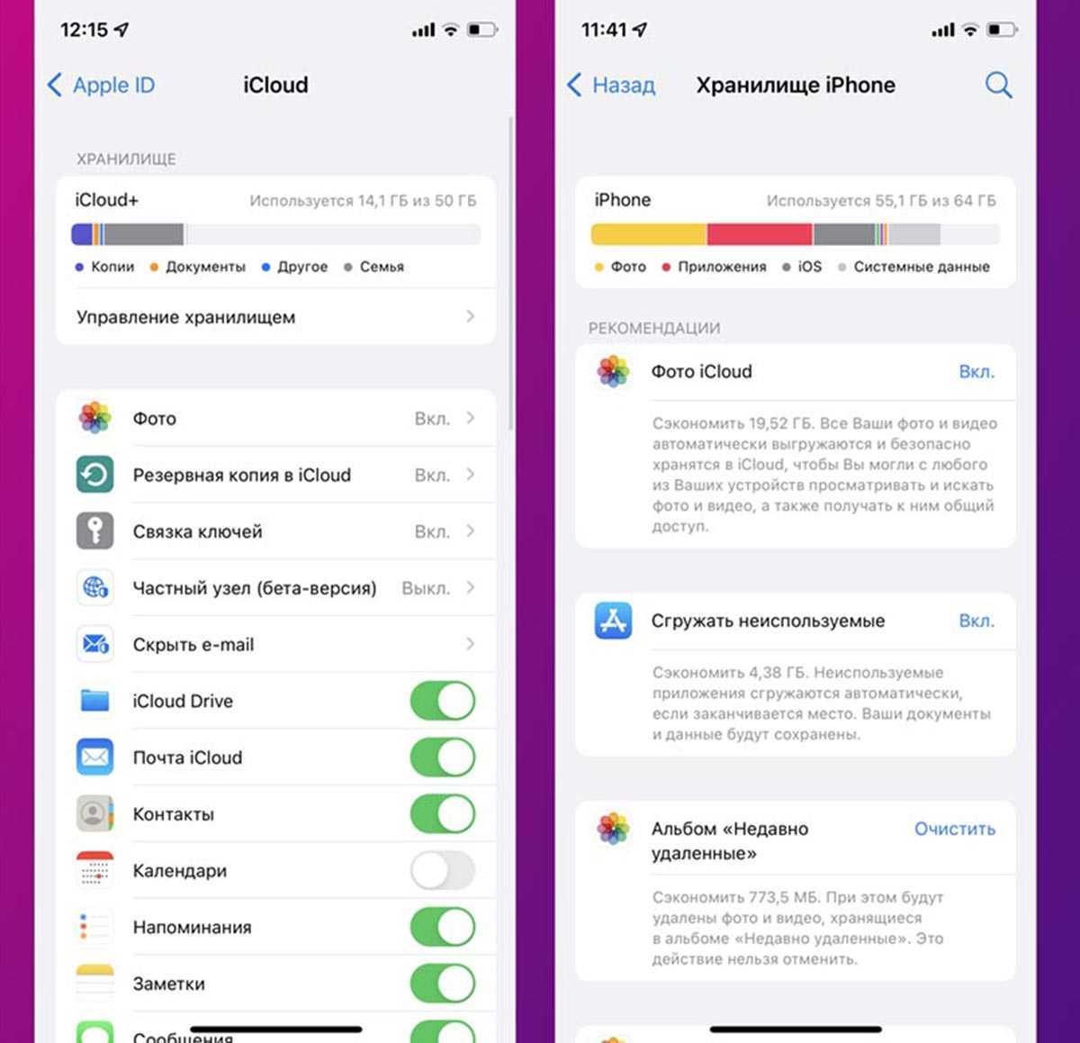 - Также рекомендуем включить функцию оптимизации хранилища, что позволит экономить место в облаке, выделенное под хранение данных.