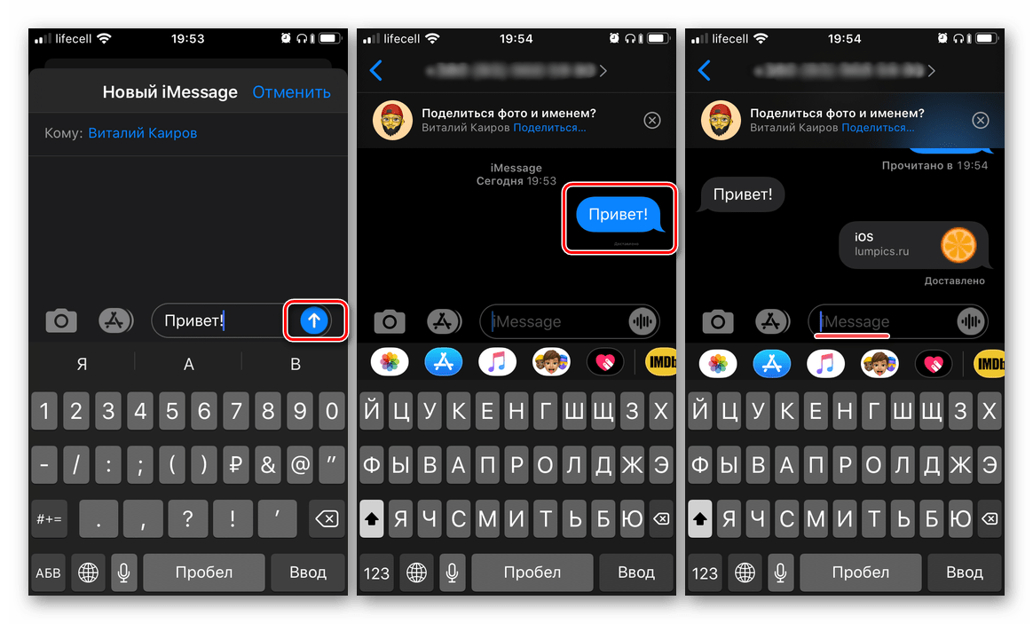 iMessage хотя и является отдельным сервисом, все же не имеет собственного приложения – он интегрирован в стандартные «Сообщения». То есть для того, чтобы начать им пользоваться, достаточно его запустить, выбрать из списка контактов получателя или ввести его данные вручную, а затем напечатать и отправить послание.