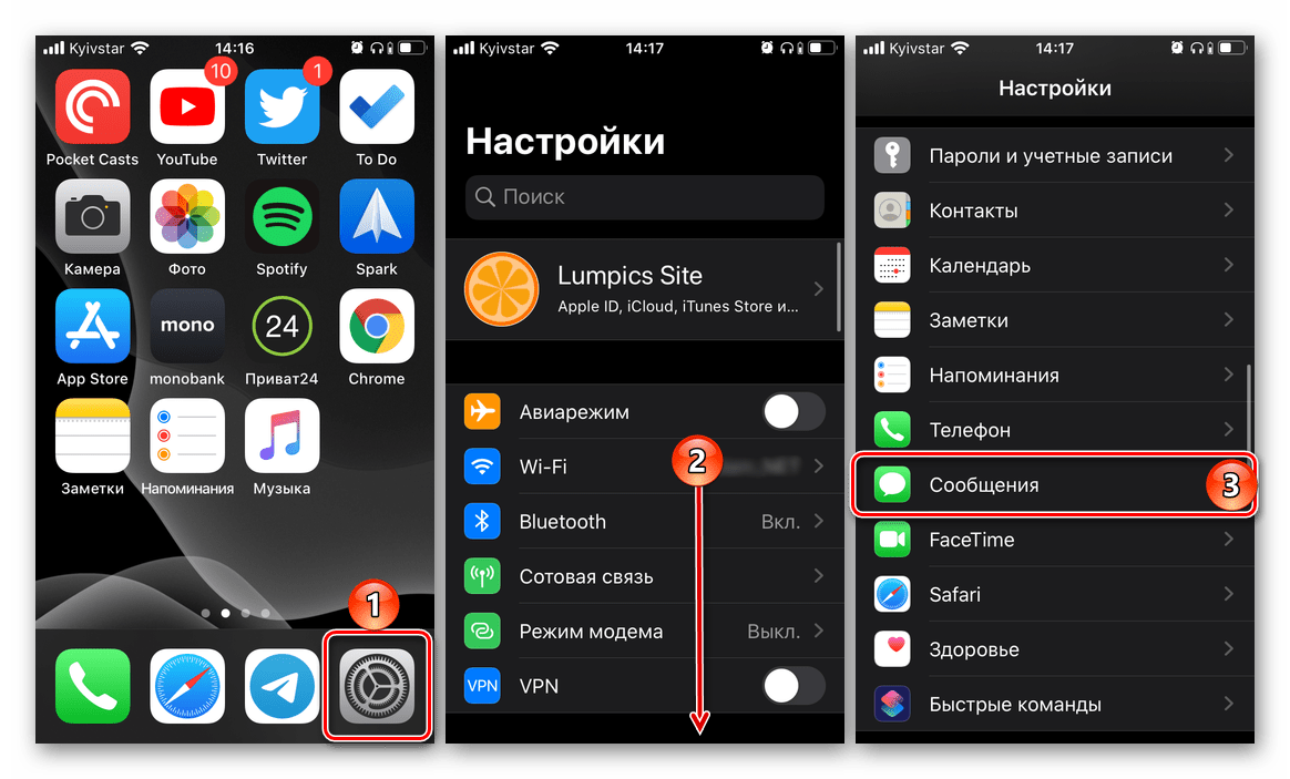 Многие предустановленные на Apple-девайсах приложения лишены собственного меню параметров, если говорить о привычном понимании этого термина – изменение их настроек осуществляется в одноименном разделе iOS. К числу таковых относится и iMessage (Сообщения). Для того чтобы активировать встроенный мессенджер, выполните следующее: