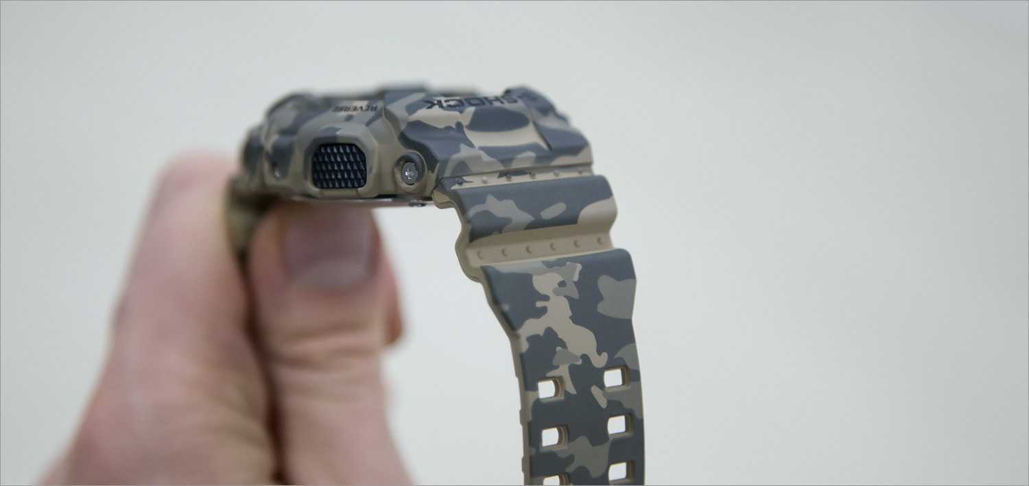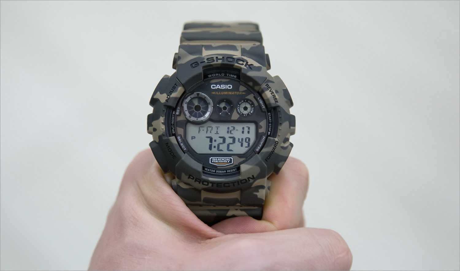 У меня на тесте оказались электронные часы CASIO G-SHOCK GD-120CM-5E в камуфляжной раскраске «woodland». Устройство является самым пятнистым представителем линейки G-Specials Collection – там все устройства имеют камуфляжное оформление (других цветов), либо предназначены для других схожих образов жизни.