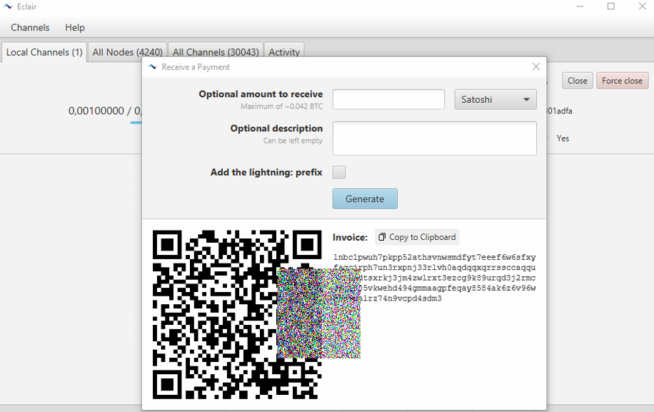После чего нажать на кнопку «Generate» и скопировать полученный инвойс: