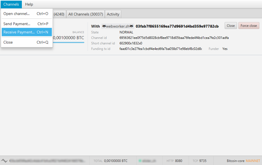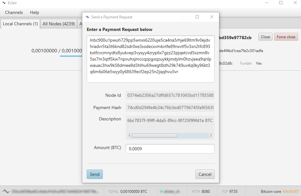 Вставляем инвойс, полученный от другого участника сети и нажимаем на кнопку «Send»:
