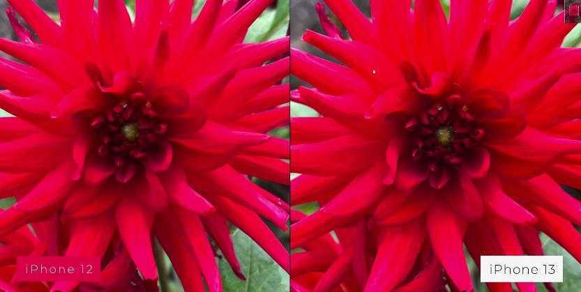 Изображения полностью идентичны. Исключением могут стать места с тенями — при сильном приближении на iPhone 13 меньше шума. Но для большинства пользователей все будет одинаково.