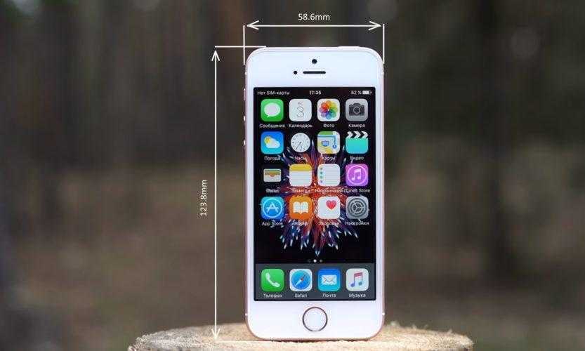 В настоящее время iPhone SE имеет экран 4in (4 дюйма), само устройство имеет размер 123.8mm на 58.6mm, с толщиной 7.6mm, при весе 113 граммов.