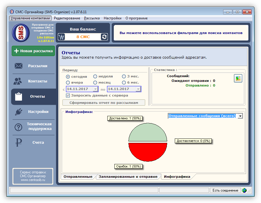 Программа SMS-Organizer предназначена для массовой рассылки сообщений, но, само собой, можно отправлять и одиночные сообщения на необходимый номер. Здесь реализовано множество самостоятельных функций: от собственных шаблонов и отчетов до черного списка и использования прокси. Если вам не нужна рассылка сообщений, то лучше воспользоваться другими способами. В обратном случае СМС-Органайзер может отлично подойти.