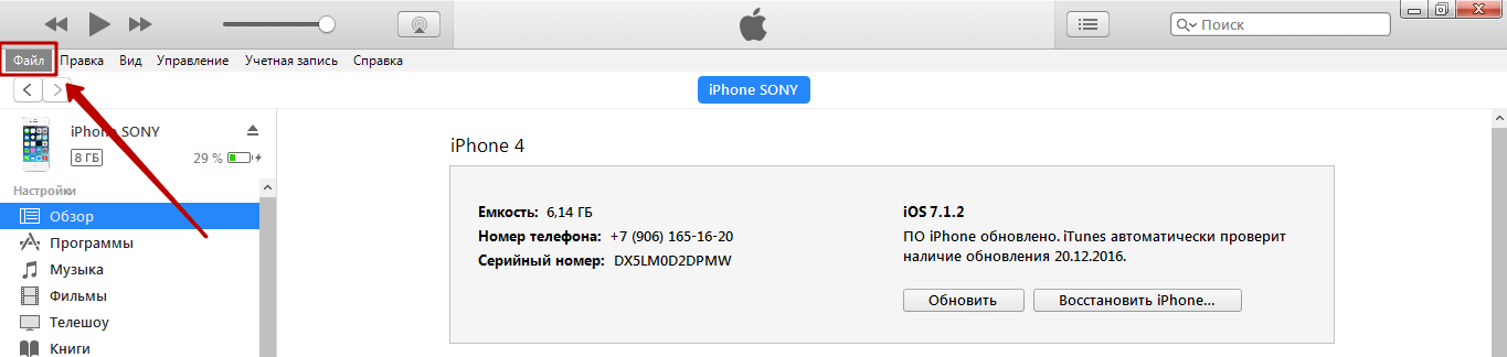 - После установки программы подключайте стандартный шнур к компьютеру и iPhone;