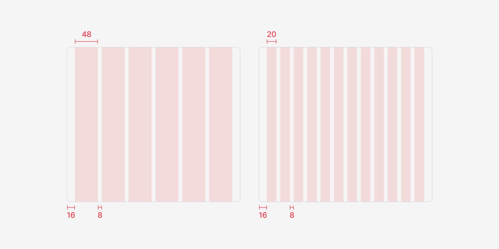 Согласованность в сетках поможет вам достичь следующего: одинаковых отступов с краев экнара в макете, равных или пропорциональных межколонных расстояний (gutters) между столбцами и одинакового поведения при изменении размера самих столбцов.