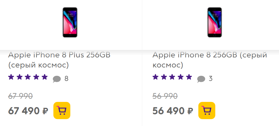 Модель 8 Plus с таким же объёмом ПЗУ обойдётся в 55 и 68 тысяч.