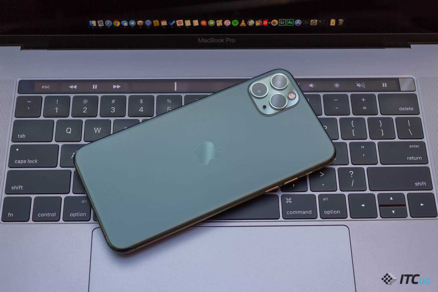 Еще заднее стекло стало матовым и добавился новый цвет корпуса. К уже привычным вариантам из Space Gray, Silver и Gold присоединился Midnight Green. Нам попал именно такой. Выглядит он здорово и наверняка найдет много своих фанатов. Оттенок может меняться в зависимости от освещения и угла поворота, но, субъективно, всегда выглядит интересно. К тому же, матовое покрытие приятно ощущается на ощупь, на нем незаметны отпечатки пальцев, хотя оно и скользковатое. От себя хочется добавить, что в линейке немного не хватает фирменного Product(RED), который доступен у модели iPhone 11.