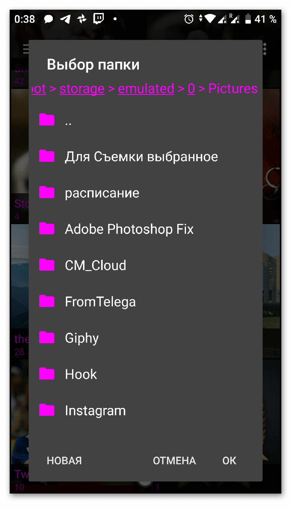 Удобное приложение для просмотра фотографий и изображений. При необходимости, пользователь может не только сделать новые каталог, но и скрыть избранные директории. Выбираем кнопку с тремя точками в правом верхнем углу. Нажимаем «Добавить», появится окно со списком папок. Кликаем на надпись «Новая» и даём название. На смартфоне появится альбом, в который можно перенести фотографии.