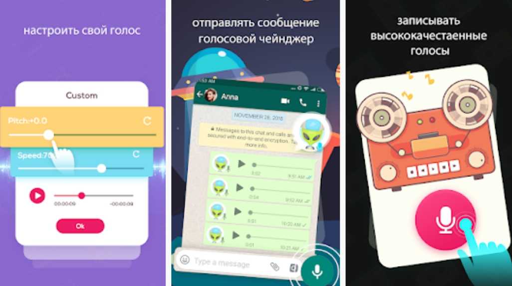 Это приложение позволяет изменить голос прямо во время телефонного разговора. Доступны на выбор разные варианты изменений голоса: с мужского на женский (и наоборот), просто сделать голос неузнаваемым, превратить его в голос монстра или какого-нибудь робота (киборга).