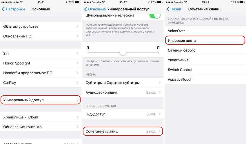 Если вы предпочитаете более темные цвета, вам понравится функция инверсии цвета. В разделе Настройки > Основные > Универсальный доступ > Настройка дисплея скрыта функция «Инверсия цвета».