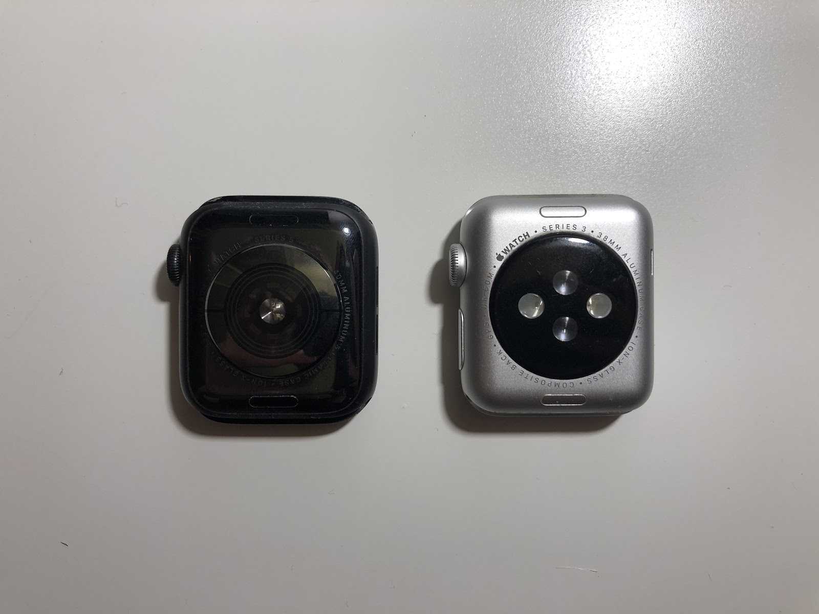 На внутренней поверхности корпуса часов расположен сенсор измерения пульса. Начиная с четвертого поколения, Apple объединила несколько датчиков в один, и это позволяет часам быстрее измерять пульс.