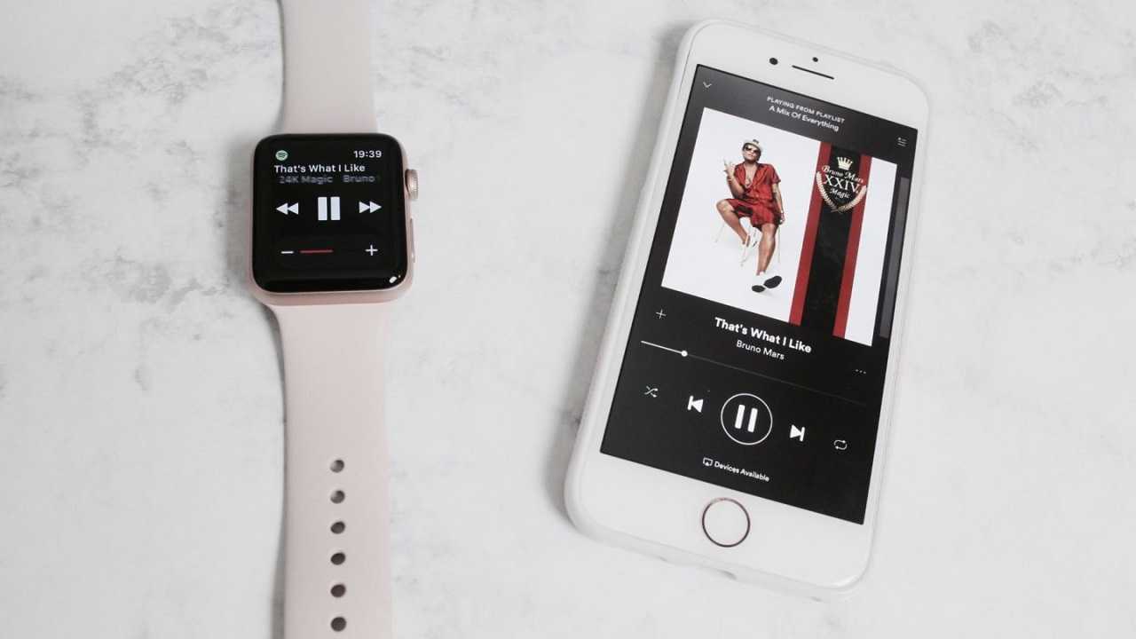 В телефоне есть встроенная память для программ, но 2 ГБ вы можете использовать под музыку. Вам просто нужно выбрать источник и музыка будет играть с телефона или часов. Управлять плеером очень удобно. Ведь не нужно доставать свой iPhone, чтобы просмотреть плейлист и найти правильную песню. Так что теперь прослушивание любимой музыки станет не только качественной, но еще и комфортной. Просто удобная реализация.