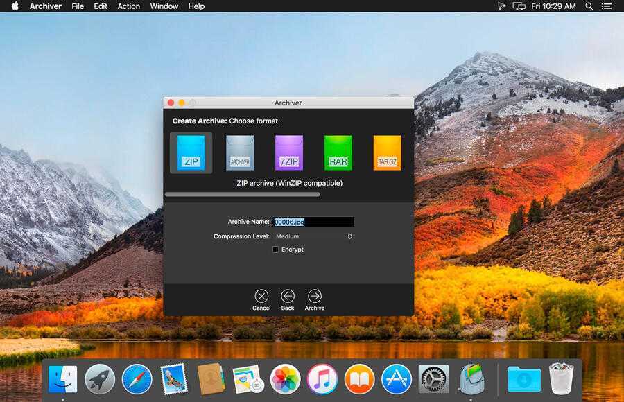 Стандартный Архиватор в Mac