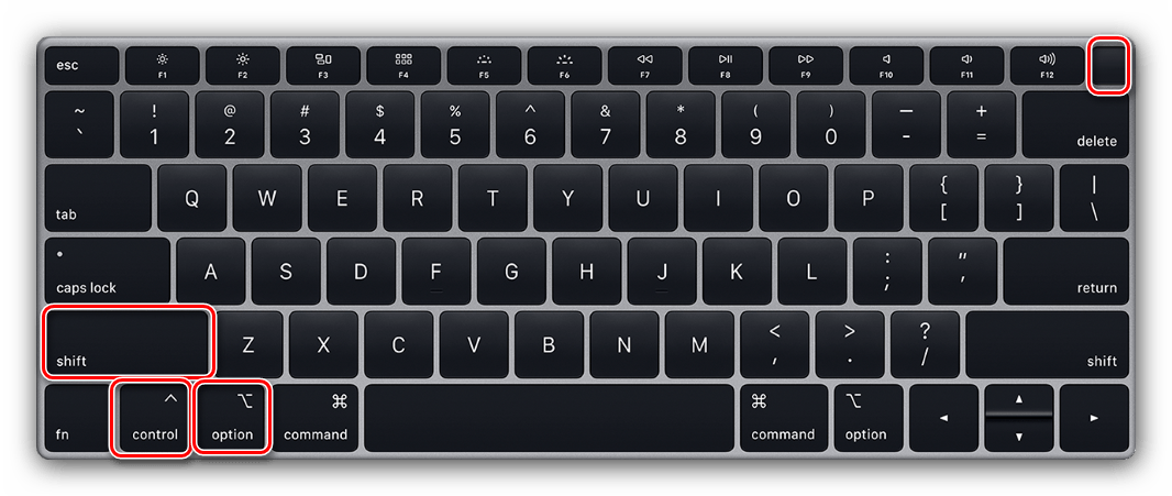 - Нажмите одновременно клавиши Shift+Control+Option+Кнопка питания, и удерживайте в течении 10 секунд.