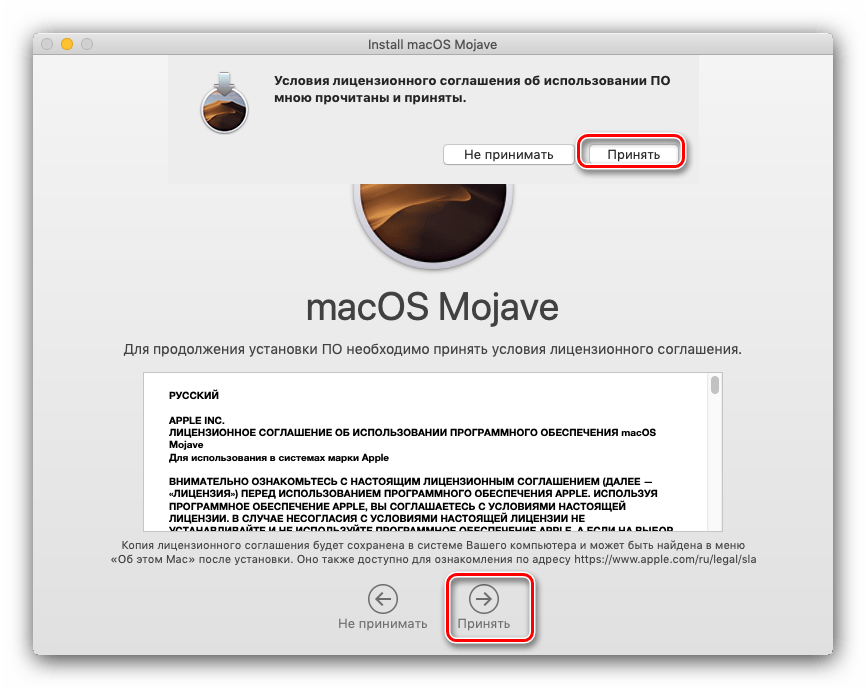 Также потребуется принять лицензионное соглашение.