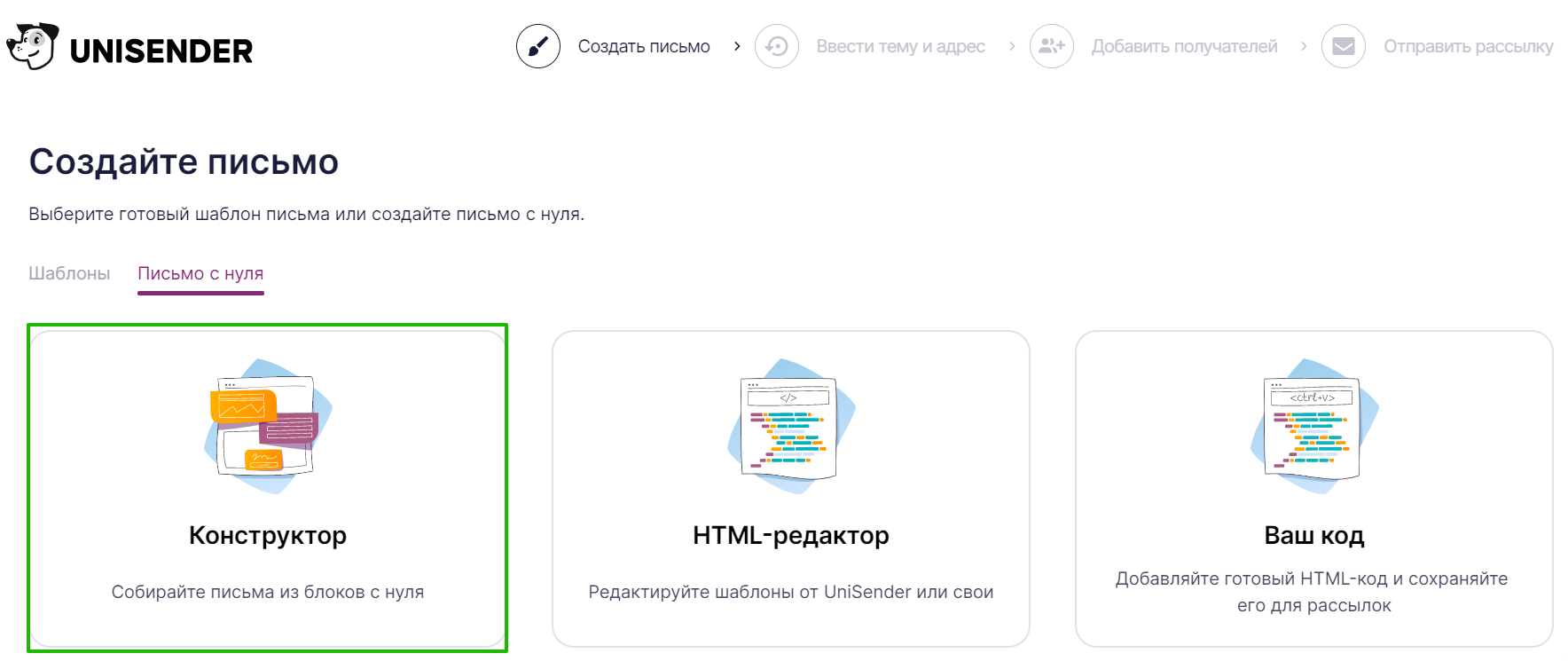 Выберите шаблон с пометкой «BLOCK» или создайте письмо с нуля.