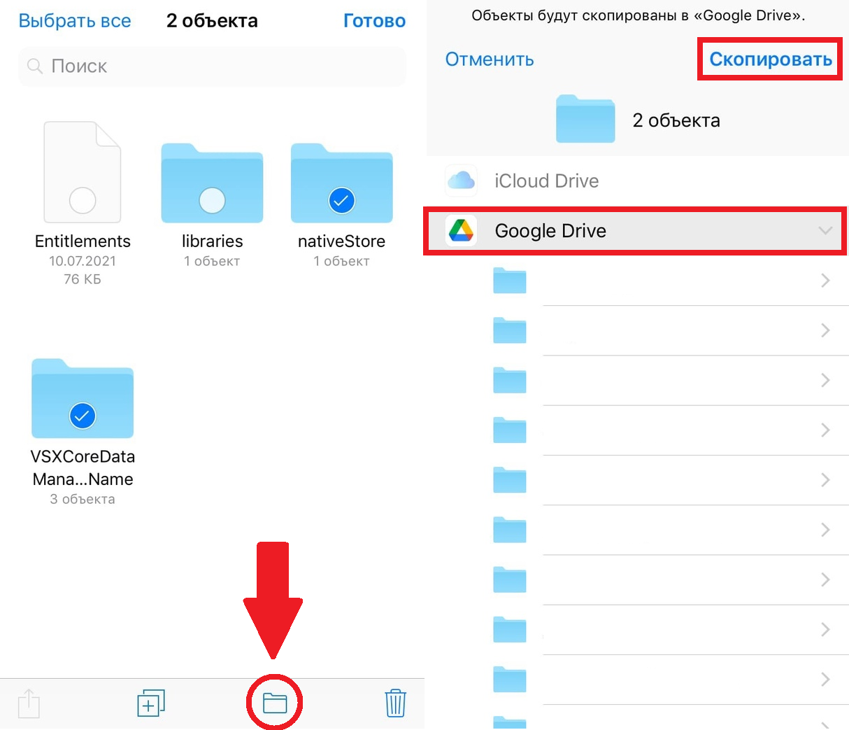 - Если ваше хранилище iCloud заполнено, можете переместить файлы оттуда в Google Drive или другое хранилище.