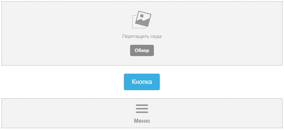 Перетащите в верхнюю строку картинку, в строку ниже — кнопку, а в самую нижнюю — блок «Меню».