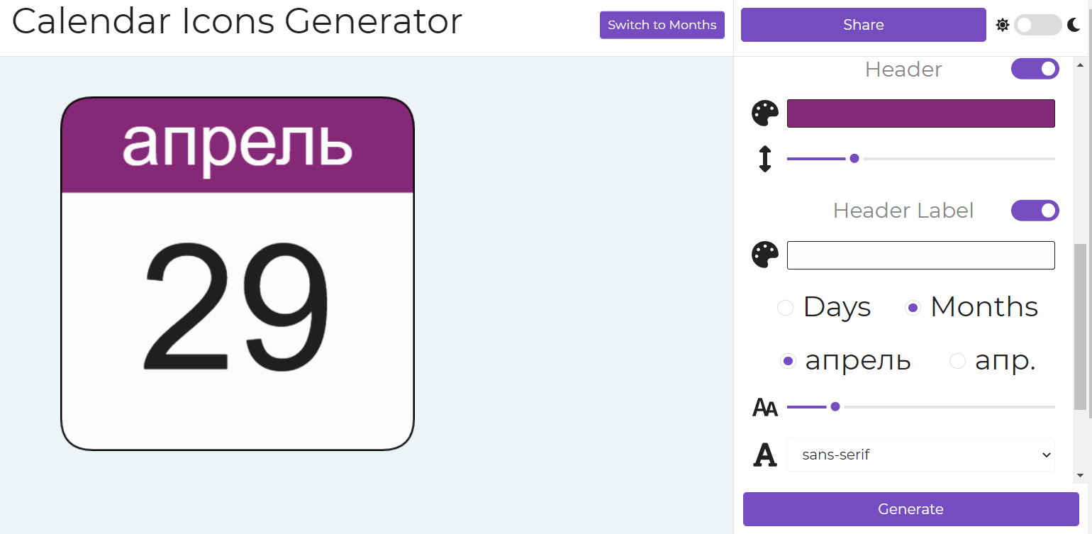 Начнём с картинки. Вы можете нарисовать свою картинку, а мы сгенерируем её с помощью бесплатного сервиса Calendar Icons Generator.
