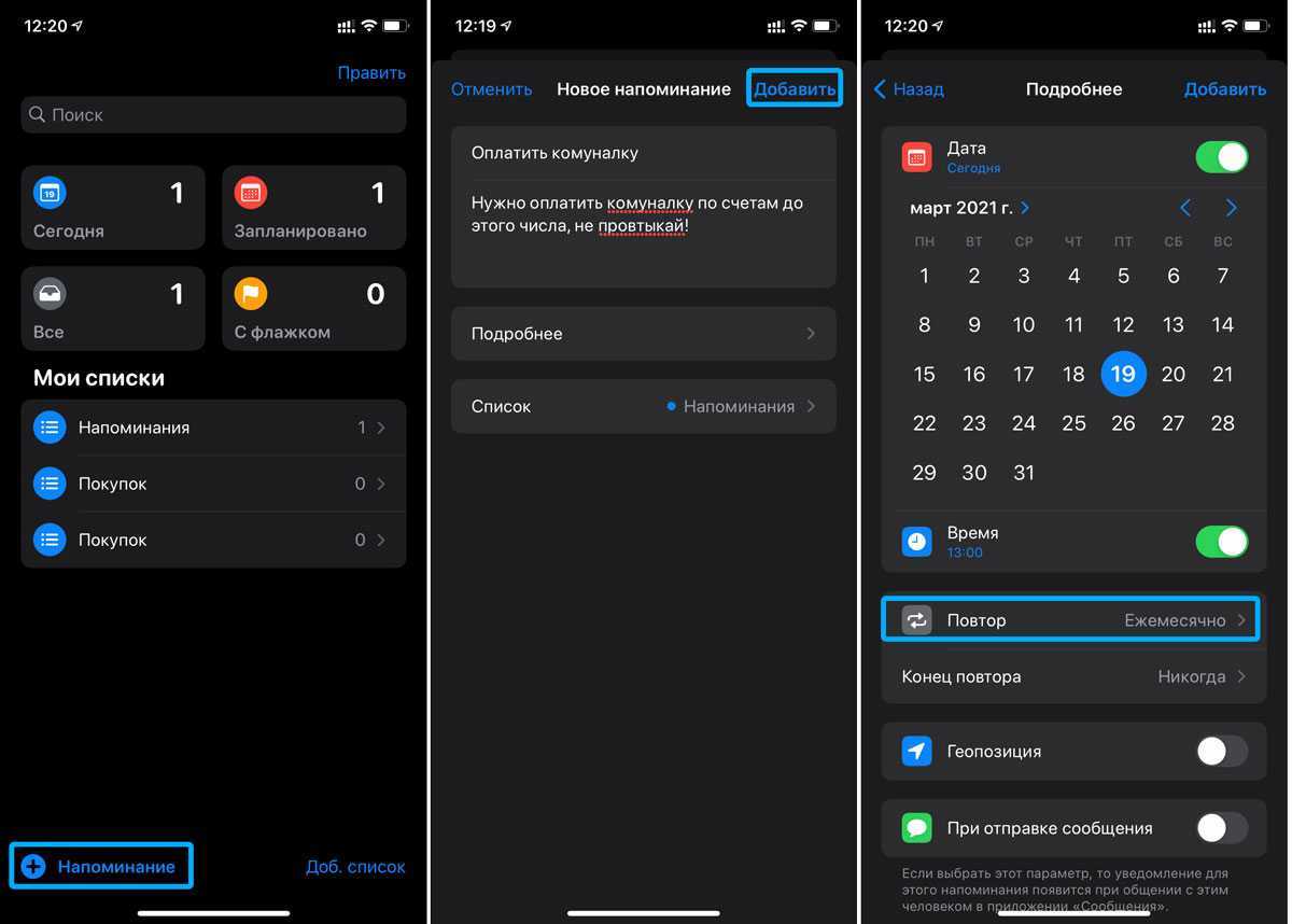 Также это можно сделать через приложение «Напоминания» с iPhone: