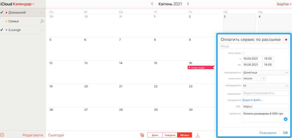 Поделитесь своим календарем iCloud на iCloud.com