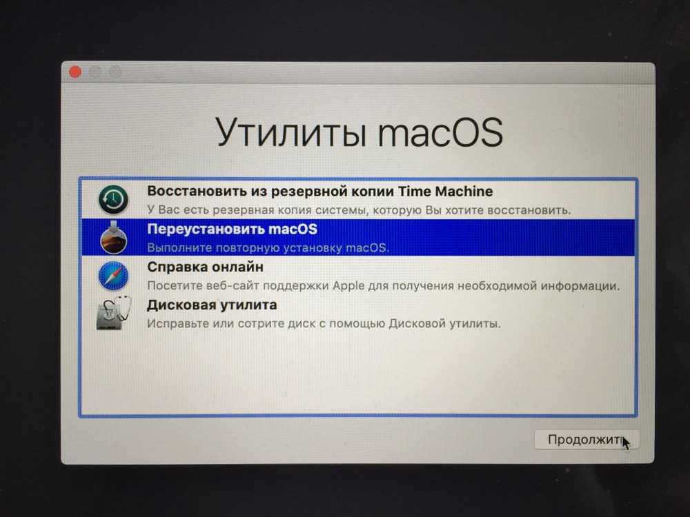 Когда способами, приведенными выше, не удается решить проблему, остается вариант с переустановкой операционной системы. Убедитесь, что все необходимые данные были сохранены, после чего запустите компьютер в режиме восстановления. Чтобы это сделать, при загрузке зажмите Command+R