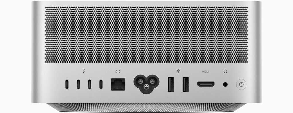 Порты на передней панели делают подключение к ним приятным и легким. Однако если установить Mac Studio в каком-то удаленном месте, его кнопка питания находится сзади, что может быть немного неудобно.
