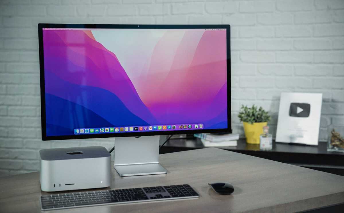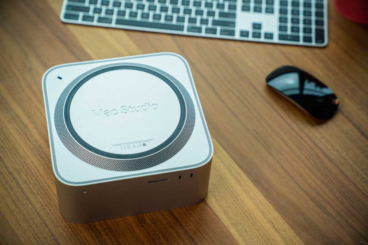 At 3.7 inches tall, the Mac Studio easily fits under Apple’s new Studio Display.