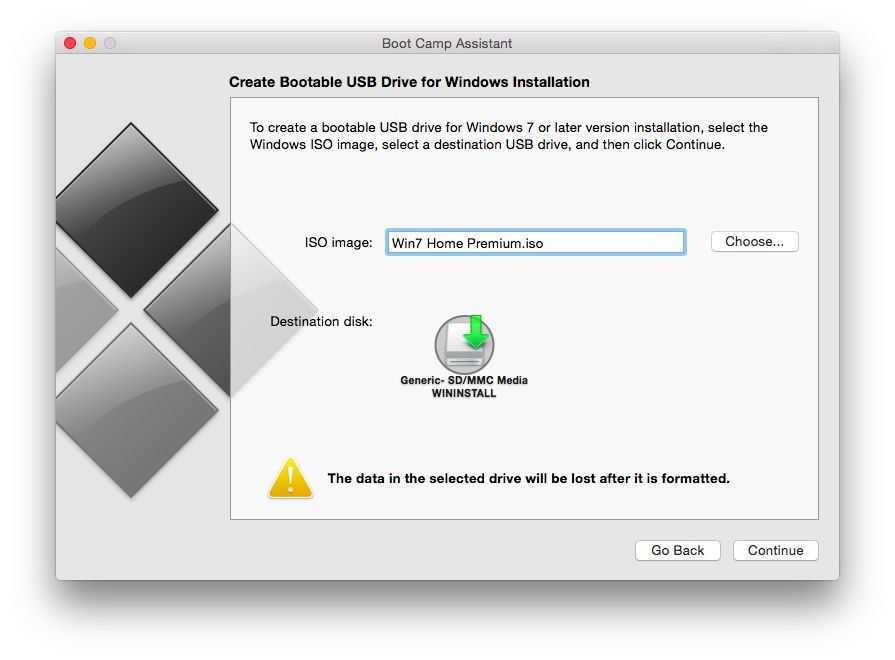 Когда вы выбираете эту опцию, Boot Camp Assistant также сообщает, что также загрузит программное обеспечение драйвера для Windows на карту памяти USB. Тем не менее, он будет загружать только драйверы для Windows 8.1 и Windows 10, поэтому, если вы хотите установить Windows 7, которая по-прежнему используется миллионами людей по всему миру, вам придется вернуться к таблицам совместимости в Apple. веб-сайт, чтобы найти программное обеспечение драйвера, которое вам нужно для вашего Mac, затем следуйте инструкциям, чтобы скопировать драйверы на карту памяти USB.