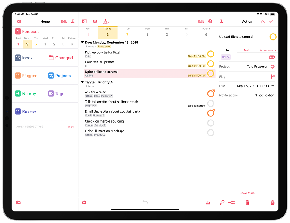 OmniFocus 3 — множество опций