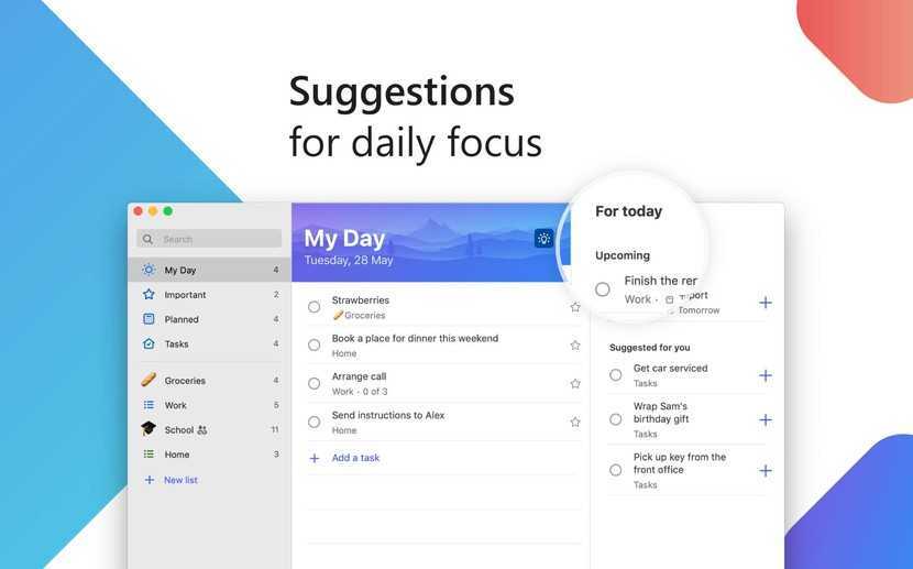 - Добавляйте даты и устанавливайте приоритеты, чтобы выделить важные задачи.