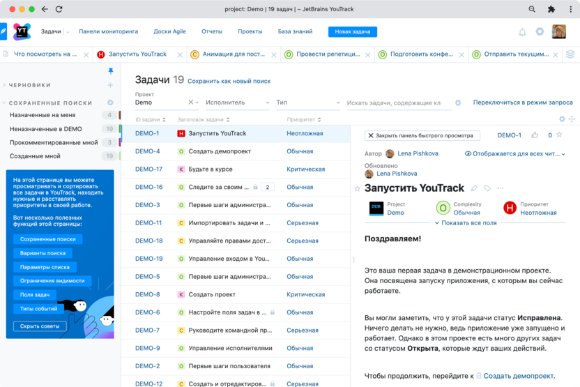 Инструмент управления проектами YouTrack помогает улучшить продуктивность команды и легко адаптируется под специфику ваших процессов и под конкретных сотрудников.