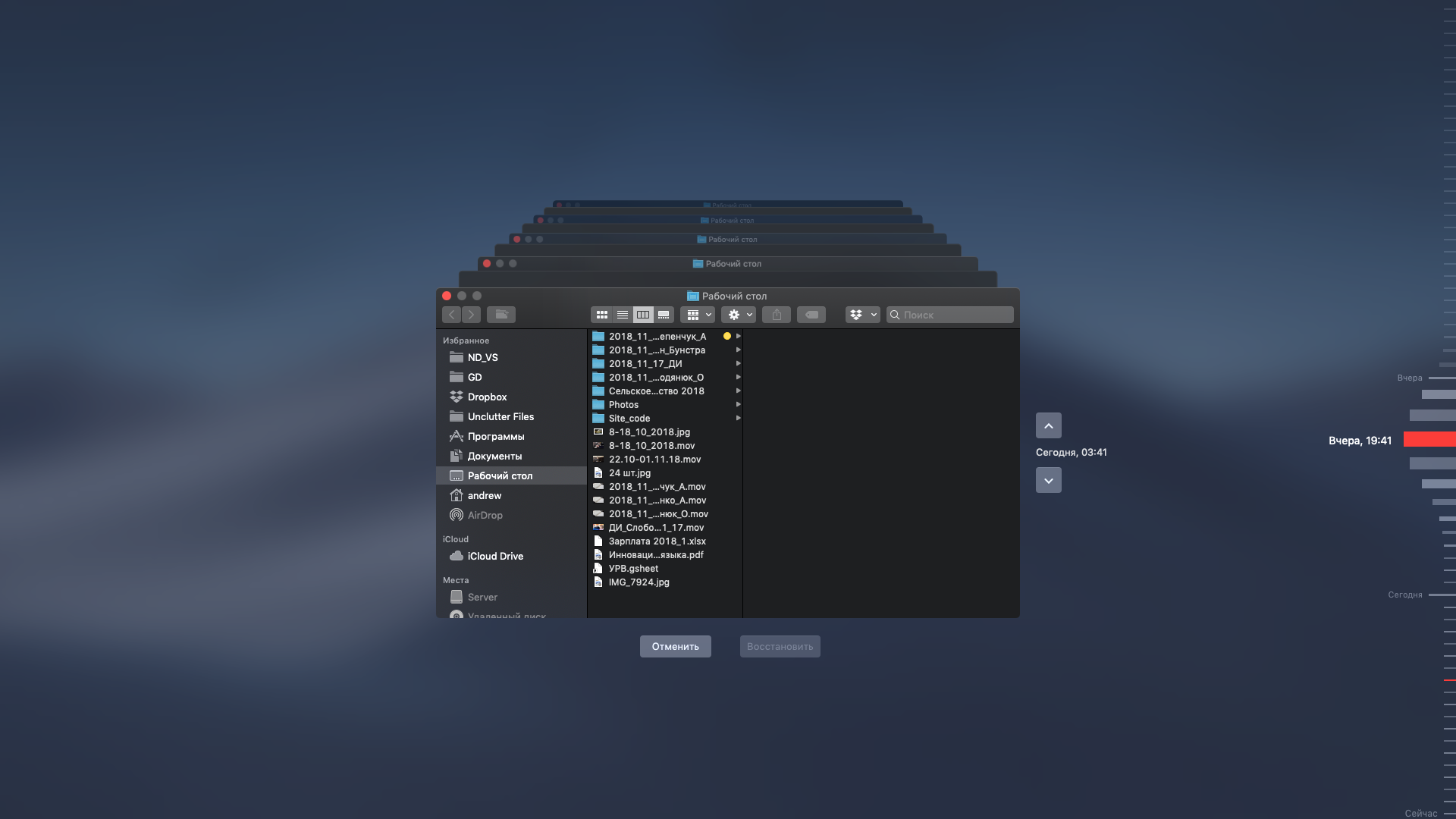 Выбор резервной копии по времени в Time Machine