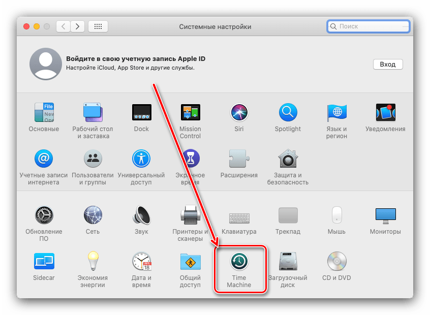 - Выберите Time Machine