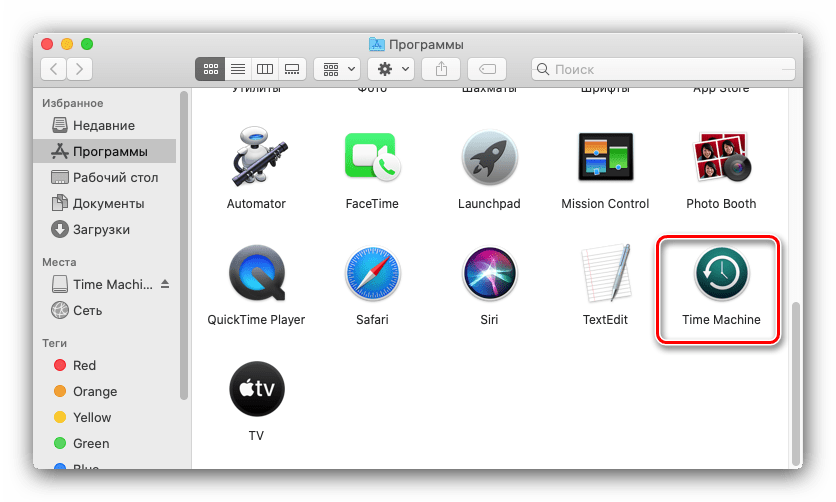 Далее запустите Time Machine.