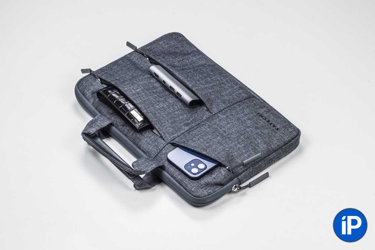Кому то совершенно не нравится таскать свой ноутбук в рюкзаке. И для таких эстетов у Satechi есть стильная компактная сумка, в которой уместится 10-дюймовый iPad Pro, 13 или 15-дюймовый MacBook Pro, iPhone, и также блок питания для лэптопа.